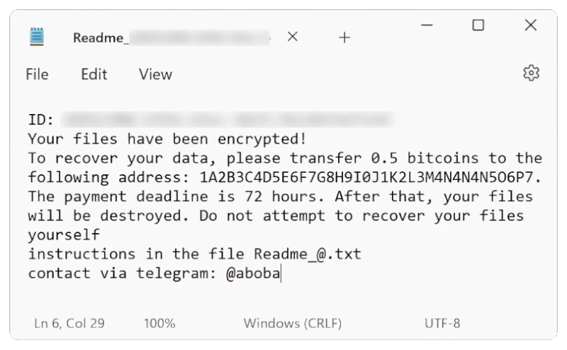 To recover your data, please transfer 0.5 bitcoins to the following address: 1A2B3C4D5E6F7G8H9I0J1K2L3M4N4N4N5O6P7.