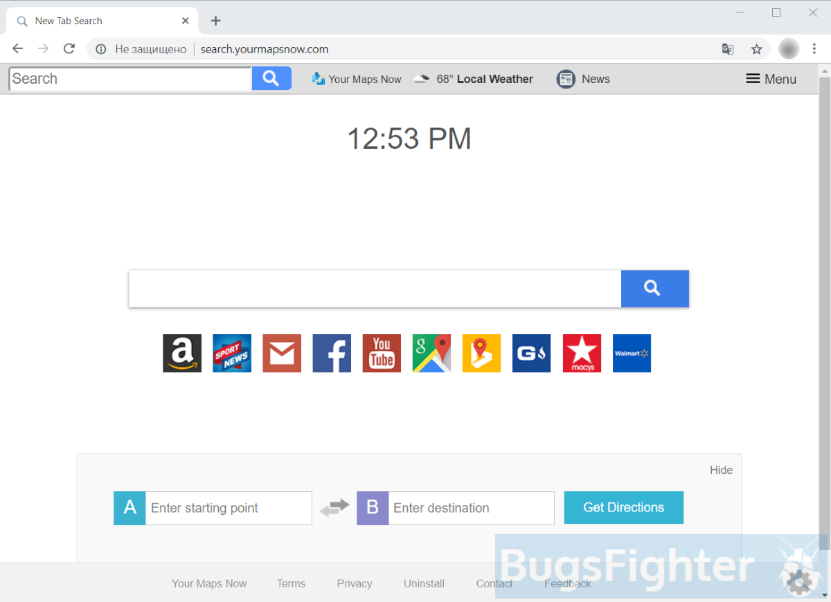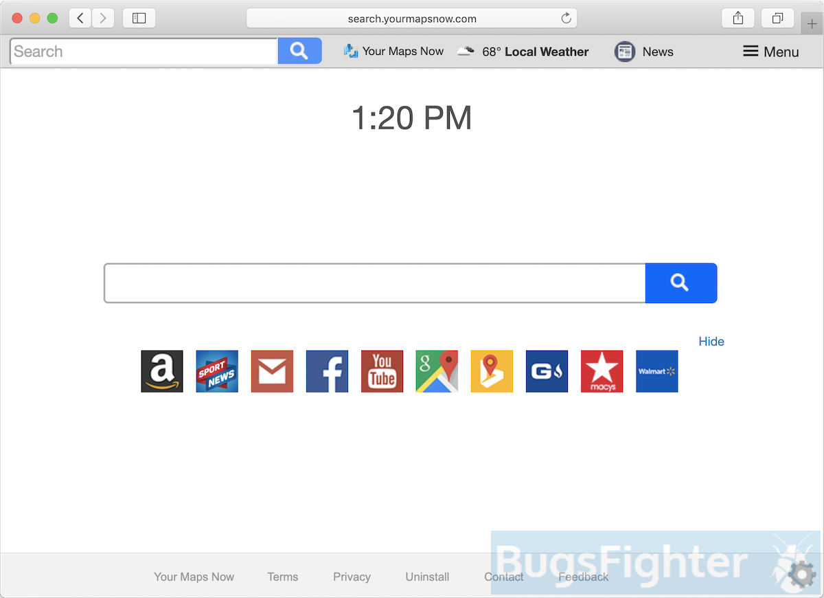 Search.yourmapsnow.com or Your Maps Now is misleading browser hijacker, that replaces default search engine and homepage in Safari, Google Chrome or Mozilla Firefox on Windows or Mac. Often, it is accompanied with browser extension or application called “Your Maps Now”. This add-on sneaks in browsers and takes control over main browser settings. Of course, it installs without user permission using the deceptive tactic. After installation, user search queries are redirected to query.yourmapsnow.com and then to search.yahoo.com. This allows the hijacker to collect private browser data and share it with advertising companies. The homepage also changes to Search.yourmapsnow.com and, besides search, provides quick links to main map resources such as Google Maps and Bing Maps. Page looks similar to normal search engine page, and some users don’t even see the difference until they start searching for something. This article contains the most complete instructions to remove Your Maps Now extension and Search.yourmapsnow.com hijacker from all major browsers and operating systems.