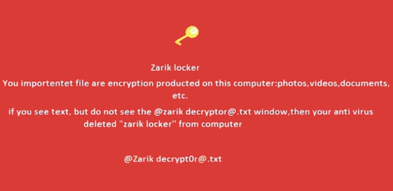 Ransomware continues to be a significant threat in the cybersecurity landscape, with Zarik Locker emerging as a recent example of this malicious software. This article provides an in-depth analysis of Zarik Locker Ransomware, detailing its infection mechanisms, file encryption methods, ransom note characteristics, availability of decryption tools, and guidance on handling encrypted files. Upon successful infiltration, Zarik Locker encrypts the victim’s files using a robust encryption algorithm. The ransomware appends a distinctive extension to the filenames (.zarik5313), marking them as inaccessible. For instance, a file originally named 1.jpg would be renamed to 1.jpg.zarik5313 after encryption. Zarik Locker ransomware announces its presence by changing the desktop wallpaper and dropping a text file named @zarik decrypt0r@.txt on the victim’s desktop. The wallpaper and text file serve as ransom notes, informing the victim that their files have been encrypted and that a ransom payment is required to regain access. The ransom note typically specifies the amount demanded (e.g., $300) and provides instructions for contacting the attackers and submitting proof of payment, such as a screenshot of the transaction.