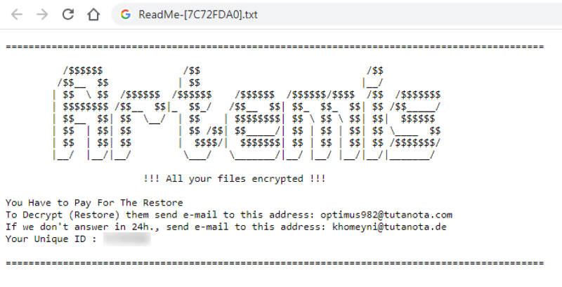 To Decrypt (Restore) them send e-mail to this address: optimus982@tutanota.com