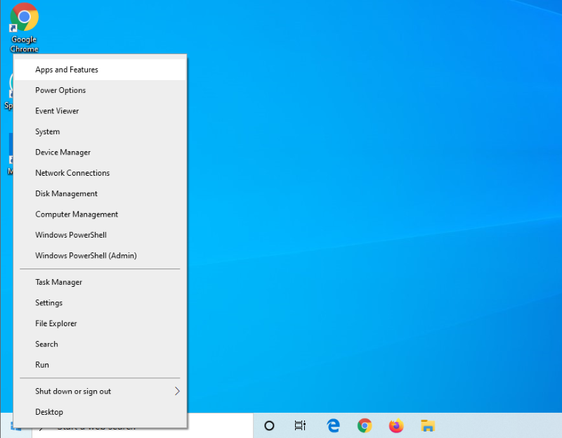 - Right-click on the Start button in the lower-left corner and select Apps and Features.