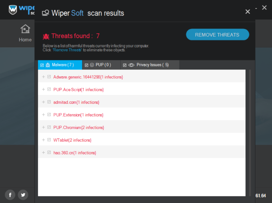Although, in spite of its absence, WiperSoft still managed to make a decent tool that is specifically stellar in neutralizing adware and spyware infections. Some scans performed better compared to certified rivals, although, not without setbacks. Sometimes, WiperSoft defines legitimate and virus-free software that is not dangerous whatsoever. For example, after running a scan, WiperSoft identified an innocent browser extension as malicious and categorized it as adware. Since WiperSoft is a young company, it is expected that it will soon go through the certification of some lab and receive the cherished status.